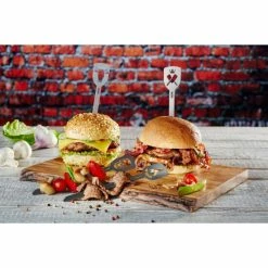 Damit beim hausgemachten Burger nichts verrutscht, werden Brötchen, Patty und leckere Garnitur mit den Hamburger-Spießen einfach fixiert! Auch perfekt , um Grillspieße appetitlich zu servieren.