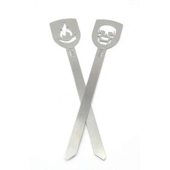 Hier bleibt alles an Ort und Stelle! Die formschönen Spieße im praktischen Zweierset bestehen aus hochwertigem Edelstahl und sind an den Griffen mit jeweils einem Totenkopf und einer Flamme ausgestattet. Sie haben eine Länge von 19 cm und eine Breite von 3 cm. Zur einfachen Reinigung dürfen sie in der Spülmaschine Platz nehmen.