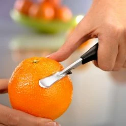 Schale entfernen leicht gemacht! Einfach die Schale von z.B. Orangen einritzen und mit dem Orangenschäler entfernen. Der ergonomische Griff liegt gut in der Hand.