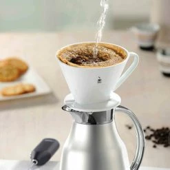 Handaufgebrüht mit einem Porzellanfilter macht Ihren Kaffee zu einem Genuss. Mit dem verlängerten Stutzen können Sie auch leicht direkt in Thermosflasche oder Thermoskanne filtern.