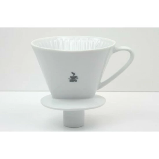 Klassischer Kaffeefilter aus Porzellan mit zwei Durchlauflöchern und Auslaufstutzen von Gefu.