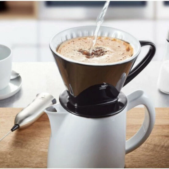Der Kaffeefilter im stylishen Schwarz-Weiß-Look ist ein toller Hingucker, der das Aufbrühen von Kaff ee per Hand auch zu einem Augenschmaus macht.