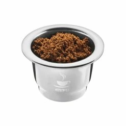 Nachhaltige, sparsame Kaffeekapseln – für alle gängigen Nespresso-Kapselmaschinen geeignet – Für alle Besitzer einer Kaffeekapselmaschine, die die Umwelt schonen und gleichzeitig Geld sparen möchten, gibt es jetzt das geniale, wiederberwendbare Kaffeekapsel-Set “Conscio”. Bei richtiger Anwendung sind die rostfreien Edelstahlkapseln unbegrenzt nutzbar und dank des praktischen Zubehörs leicht zu befüllen. Das 8-teilige Set enthält 2 Kaffeekapseln, 2 Ersatzdichtungsringe, Trichter, Kaffeemaß mit Tamper und 80 Aroma-Sticker.