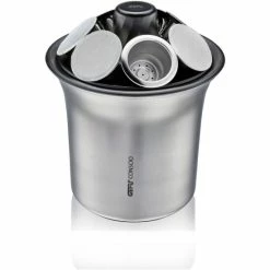 Schnell, komfortabel, sauber: mit CONSCIO lassen sich Kaffeekapseln im Handumdrehen entleeren. Einfach die benutzte Kapsel mit der Öffnung auf den robusten Dorn stecken und drehen. Der Kaffeesatz fällt in den Auffangbehälter und die Kapsel ist anschließend direkt wieder einsatzbereit.