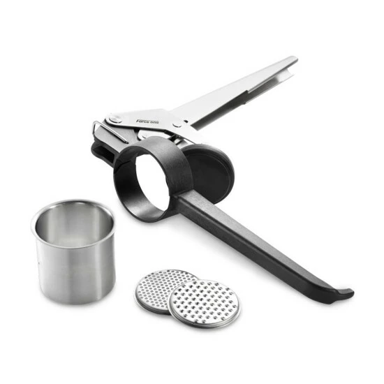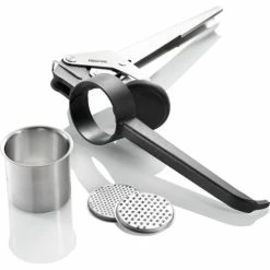 Ergonomische Form für optimale Handhabung. Großes Fassungsvermögen, zerlegbar für leichte Reinigung. Ideal auch als Presse für Obstsäfte, Kartoffelpüree, Spaghetti-Eis etc.