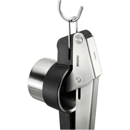 Vielseitiges Kraftpaket. Mit der Kartoffel-und Saftpresse Force One von Gefu zieht ein kraftschonender Küchenhelfer in Ihren Haushalt. Zur Presse (37 x 8,5 x 13 cm) gehören 1 abnehmbarer Behälter und 2 Lochscheiben (Lochdurchmesser 2 mm und 3 mm), die sich problemlos austauschen lassen. So bereiten Sie frische Säfte, Kartoffelpüree und hausgemachte Spätzle mit minimalem Kraftaufwand zu. Die Presse aus hochwertigem Edelstahl und Nylon ist säurebeständig, sowie geruchs- und geschmacksneutral. So genießen Sie Süßes oder Herzhaftes ohne den Beigeschmack von fremden Aromen. Dank der innovativen Fixierung bleibt der Stempel auch beim Öffnen der Presse stets über dem Behälter und verhindert, dass Teig, Gemüsereste oder sonstige Lebensmittel auf die Arbeitsfläche tropfen. Die extralangen Griffe erlauben besonders einfaches und effizientes Arbeiten. Bis zu 80 % Kraftersparnis sind durch die Hebelmechanik möglich. Durch die herausziehbare Öse am Griffende können Sie die Presse bequem an einem Aufhänger über der Küchenzeile aufbewahren. Behälter, Lochscheiben und Presse lassen sich nach Verwendung in der Spülmaschine reinigen.