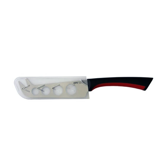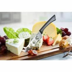 Die 11,5 cm lange Klinge des Käsemessers SENSO ist aus japanischem Klingenstahl gefertigt. Die gelochte Klinge sorgt dafür, dass sie mühelos durch den Käse wie Brie, Camembert oder Romadur schneidet ohne zu verkleben. Mit der Messerspitze können dann die Käsestücke einfach aufgenommen werden. Der ergonomische Kunststoffgriff ist an der Unterseite gummiert – so ist für sicheren Halt gesorgt. Und nach Gebrauch kann das Messer zur einfachen Reinigung in die Spülmaschine.
