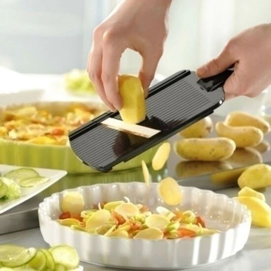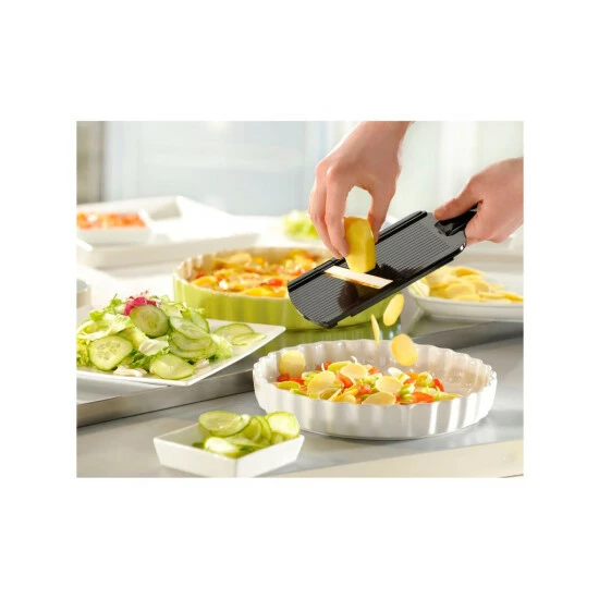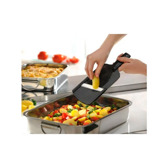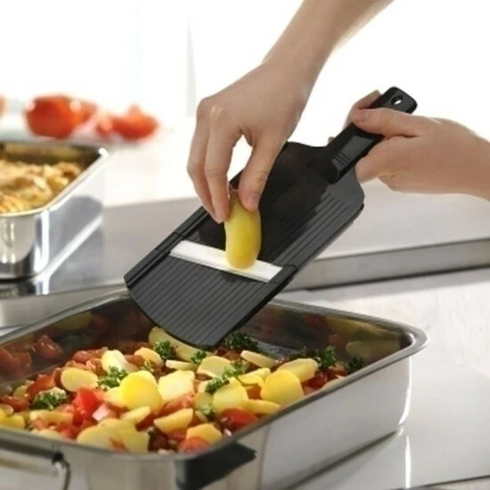 Ultrascharf! Das Schnittgut gleitet ungewöhnlich leicht über die Keramik-KlingeFür perfekte hauchdünne 1 mm ScheibenInkl. RestehalterKurzes Abspülen unter fließend Wasser genügt!Spülmaschinengeeignet