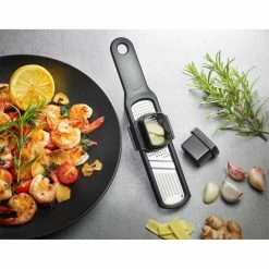 Doppelt talentiert für feine Würze! Ob fein gerieben oder in dünnen Scheibchen – sowohl Vorder- als auch Rückseite des RAFINO verarbeiten Knoblauchzehen ebenso schnell wie effektiv. Auch geeignet für Ingwer.