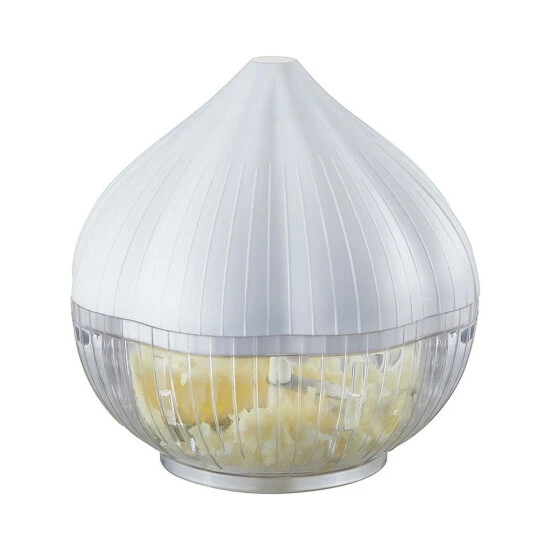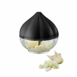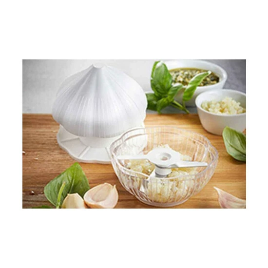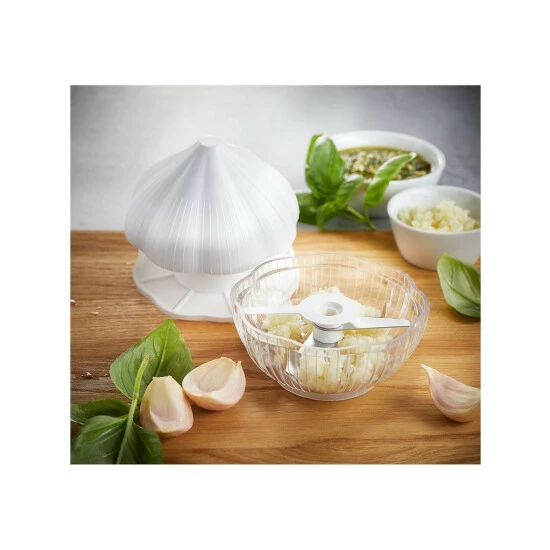 Gleich mehrere Knoblauchzehen sind im Nu per durchdachter Drucktechnik zerkleinert – dafür sorgen drei Klingen aus hochwertigem Klingenstahl und der integrierte Abweiser. Den originellen Knollen-Look begleitet ein Antirutschfuß für ein sicheres Handling.