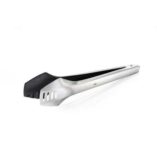 Koch- und Grillzange DUO, 35 cm Die Koch- und Grillzange bietet dank der unterschiedlichen Materialien ein weites Einsatzgebiet. Egal ob am Grill, im Topf oder der Pfanne, DUO macht immer eine gute Figur. Denn der Kunststoffarm verhindert das Verkratzen am Topf-/Pfannenboden und schöpft durch seine Löffelform auch Flüssigkeiten. Der Edelstahlarm hält der Hitze am Grill stand und lässt unnötiges Fett direkt beim Transport abtropfen.Zum platzsparenden Verstauen einfach arretieren.