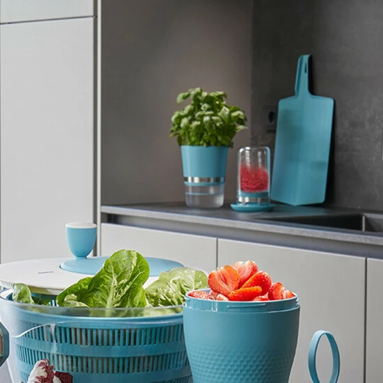Kräutertopf BOTANICO – Bewässerungssystem mit Nylondocht – H: 18,5cm – azurblau