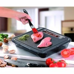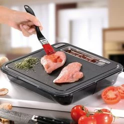 Der Küchenpinsel BECKY ist ein unentbehrlicher Küchenhelfer, der beim Kochen, Braten und Grillen sein Können unter Beweis stellt! Seine bis 120°C hitzebeständigen Nylon-Borsten – natürlich geschmacksneutral – sorgen für ein perfektes Streichergebnis, wenn ein Kuchen mit Schokoglasur überzogen, Kekse mit Zuckerguss verziert oder das Steak mit Marinade bepinselt werden soll! Auf 25mm Breite streicht BECKY gleichmäßig und ohne zu verkleben. Wenn eine Pause eingelegt werden soll, hilft die Antirutsch Nase und der gewölbte Griff: Der sorgt dafür, dass man den Küchenpinsel an Schüsselrändern „parken“ oder ihn direkt auf die Arbeitsplatte legen kann, ohne diese zu verschmutzen!
