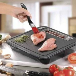 Marinieren, Glasieren oder Backen – all dies wird mit dem hygienischen Küchenpinsel Becky besonders gleichmäßig und einfach. Der Pinsel mit ca. 2,5 cm Breite hat hitzebeständige Borsten aus Nylon, die bis zu 120 °C aushalten.