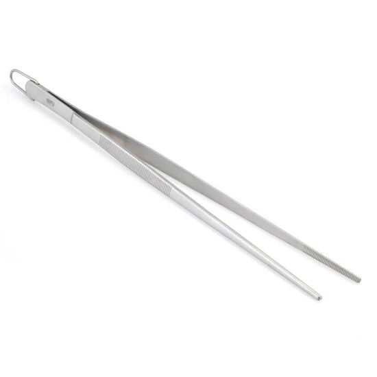 Stabile Pinzette aus Edelstahl für viele Einsatzbereiche. Zum Wenden und Entnehmen von Speisen, Grillen und zum Servieren bei Tisch.