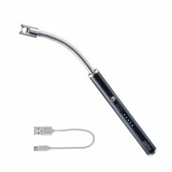 Dieses Elektro-Feuerzeug kommt ohne Gas aus! – Endlich gibt es ein Feuerzeug, bei dem man kein Gas oder Benzin nachfüllen muss! Auf Knopfdruck erzeugt “Flex” einen elektrischen Lichtbogen, der auch bei Wind und Wetter zuverlässig zündet. Dank des flexiblen Schwanenhalses können selbst Teelichter im Glas problemlos erreicht werden – ideal für Windlichter, zum Anzünden von Kamin, Grill etc. Mit USB-Ladekabel, aus verzinktem Metall und ABS-Kunststoff. Länge 25 cm.
