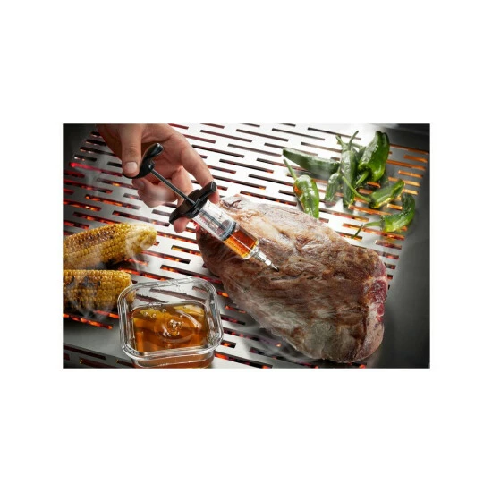 Da läuft einem das Wasser im Munde zusammen: Mit der Marinadenspritze wird die Marinade direkt im oder über dem Fleisch verteilt. So bleiben Schweine-, Rind-, Wild- und Geflügelfleisch immer schön saftig.
