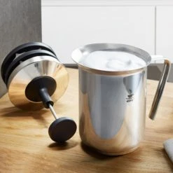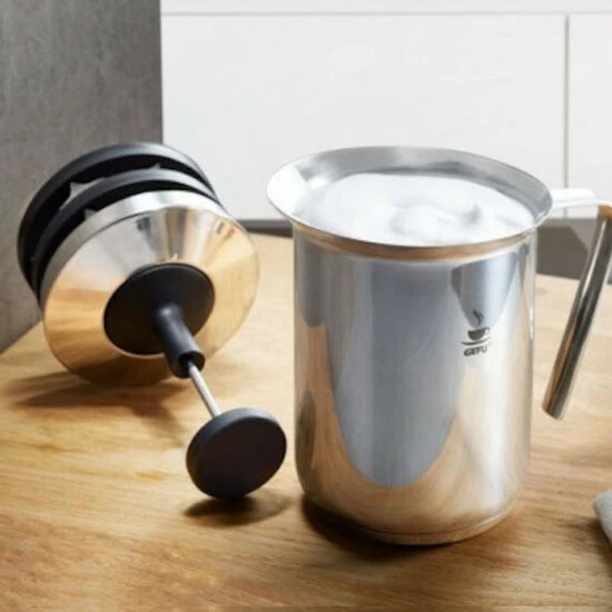Entwickeln Sie Ihre Leidenschaft für Kaffee, indem Sie Zubehör in Ihrer Küche hinzufügen, um schwarze Getränke immer perfekter zu machen. Der praktische Riccardo Milchaufschäumer mit einem Kolben hilft Ihnen, den perfekten Kaffeeschaum wie in einem professionellen Café zu bekommen. Mit ihm bereiten Sie einen ausgezeichneten Cappuccino, Latte oder Macchiato mit einem tiefen Geschmack und Aroma zu. Riccardo Foam ist aus Edelstahl gefertigt. Große Kapazität (800 ml) ermöglicht es Ihnen, eine große Portion geschäumter Milch oder Sahne für mehrere Kaffees vorzubereiten, und die Skala im Inneren der Schale ermöglicht es Ihnen, die Flüssigkeit genau zu messen. Das Gericht eignet sich hervorragend zum Servieren von Kaffee für mehrere Personen — jeder von ihnen kann das Getränk mit der richtigen Menge Milch würzen. Der Doppelgitterkolben beschleunigt die Vorbereitung von Schaum. Schaumstoff ist geeignet für Gas-, Elektro- und Induktionsherde. Spülmaschinenfest.