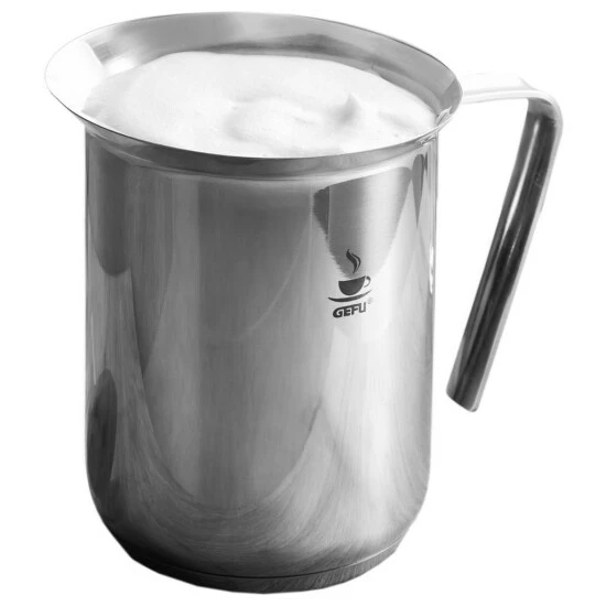 Trinken Sie gerne Cappucino oder Latte Macchiato? Dann wissen Sie, dass der Milchschaum nicht fehlen darf. Mit diesem GEFU Milchschäumer können Sie die Milch im Handumdrehen zu einer luftigen Masse aufschäumen. Der Milchaufschäumer besteht aus Edelstahl und hat ein Fassungsvermögen von 800 ml. Nach Gebrauch kann er in die Spülmaschine gestellt werden.