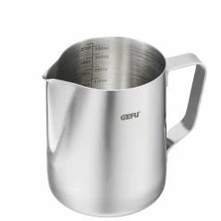 GEFU | Aufschäumkännchen 600 ml, Edelstahl mit Skalierung (ml / fl. oz)Milchschaum wie bei den Profis! Mit dem BARISTA Edelstahlkännchen gelingt der perfekte Milchschaum für alle Kaffeespezialitäten von Esspresso Macchiato bis zum Latte Grande!- nach innen gewölbter Boden für extra stabilen Stand,- schlanke Ausgießnase für präzises und tropffreies Dosieren des perfekten Milchschaums,- innenliegende Messskala für exaktes Abmessen der Flüssigkeit,- auch zum Erhitzen geeignet, – einfaches Reinigen in der Spühlmaschine möglich,- für Gatronomie und Hobby-Baristas gleichermaßen geeignet,- hochwertiger Edelstahl,- Maße: L 12,7 cm, B 9,2 cm, H 11,2 cm- Füllvolumen: 600 ml