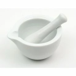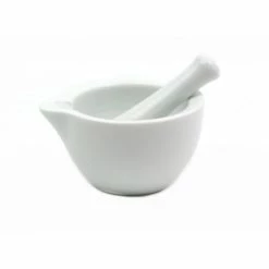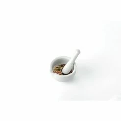 Klassischer Mörser aus Porzellan in kompakter Ausführung.