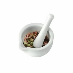 Der GEFU Mörser ist aus widerstandsfähigem Porzellan hergestellt und dank des aufgerauten Bodens bestens für das Feinstampfen von Kräutern geeignet. Der Mörser hat eine praktische Ausschanköffnung und wird in einer schönen Geschenkverpackung geliefert. Der Mörser ist spülmaschinenfest.