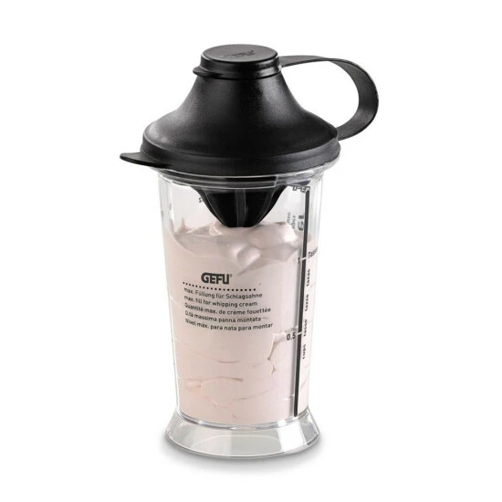 – Skala auf dem Becher: ml, ccm, cups, fl .oz. sowie Angabe max. Einfüllmenge für Sahne