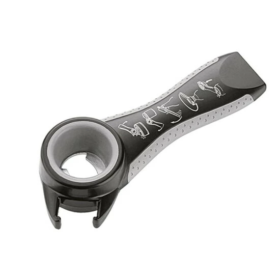 Ein wahres Multitalent, denn mit diesem Öffner lassen sich Drehverschlüsse (Ø 27mm – 31mm), Kronkorken, Glasdeckel, Getränke- und Pull-Ring Dosen öffnen. Kunststoff.