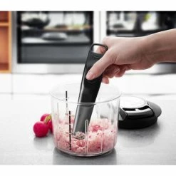 - universell einsetzbar und ganz ohne Strom übernimmt dieses Multitalent das Zerkleinern von Obst und Gemüse, Nüssen, Zwiebeln oder Fisch, das Rühren und Mischen von Dip bis Dessert oder auch das Trockenschleudern von Kräutern