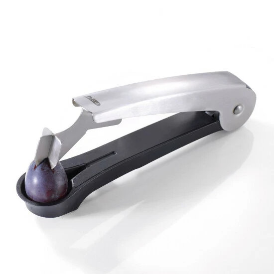 Bequemes Entsteinen von Zwetschgen ::: Arretierbar für sicheres und platzsparendes Verstauen ::: Kreuzklinge ::: Edelstahl 18/10 und ABS Kunststoff ::: Spülmaschinenfest