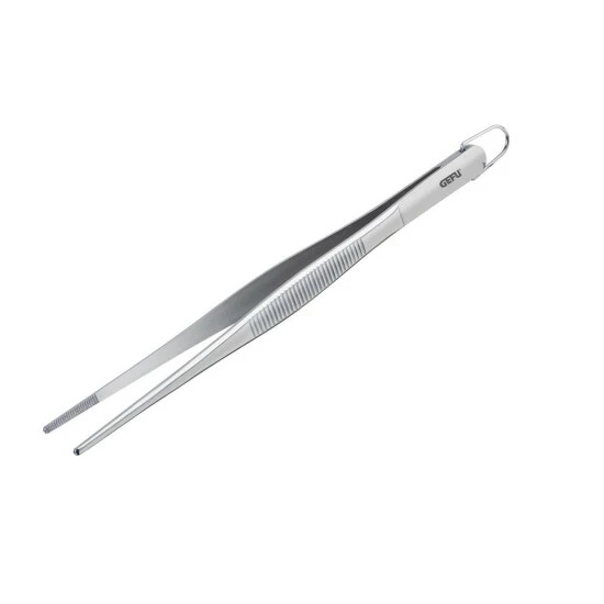 Gefu | Küchenpinzette PrecisoEin Küchenutensil für die feinen, kleinen Arbeiten, zum filigranen Dekorierenvon Haupt- und Süßspeisengeriffelte EndenAufhängeösehochwertiger EdelstahlspülmaschinengeeignetL 15,5 cm, B 1,6 cm, H 1,8 cm