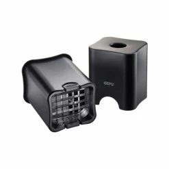 Kurz drücken statt lange schnippeln: POMCUT ist die kleine Zauberkiste für alle Kochkünstler, die Kartoffeln, Gemüse oder Obst in schlanke Stifte oder wunderbar gleichmäßige Würfel verwandeln möchten. Der POMCUT besteht aus einem standfesten Sockel mit Schneidgitter und einem Stößer. Um leckere Pommes oder knackige Gemüsesticks zu erhalten, legt man Kartoffel, Gurke oder Möhre einfach auf das Schneidgitter und drückt sie mit dem Stößer durch die scharfen Klingen nach unten. Voilá! Genauso einfach und bequem macht der POMCUT aus Obst- oder Gemüsescheiben perfekte Würfel für kunterbunte Eintöpfe und Obstsalate oder dekorative Croutons aus Toastbrot. Durch sein kompaktes, platzsparendes Design findet der POMCUT problemlos Platz in jeder Küche.