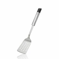 Mit dem flachen Spatel können Sie Steaks oder Bratkartoffeln leicht wenden. Die Löcher verhindern das Verspritzen von Fett beim Wenden und reduzieren so die Gefahr von Verbrennungen.