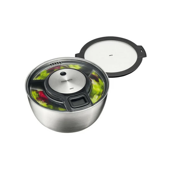 Gefu Edelstahl Salatschleuder zum leichten, schonenden Salat schleudern und dekorativen Servieren.