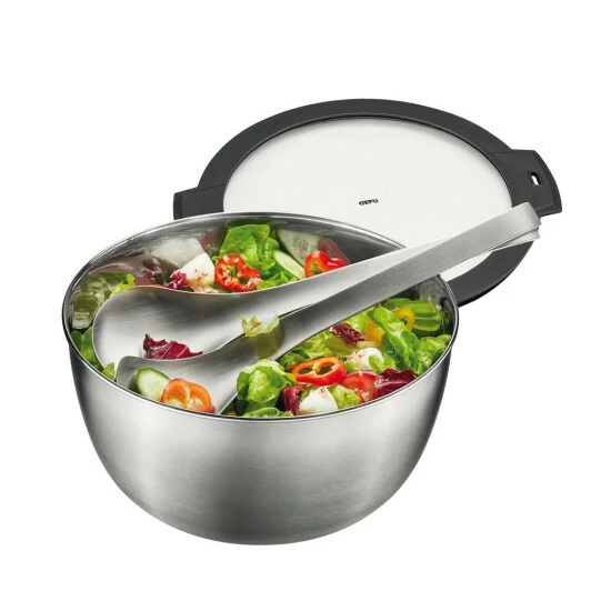 Besonders praktisch: Die formschöne Edelstahlschüssel eignet sich hervorragend, um den Salat elegant zu servieren.