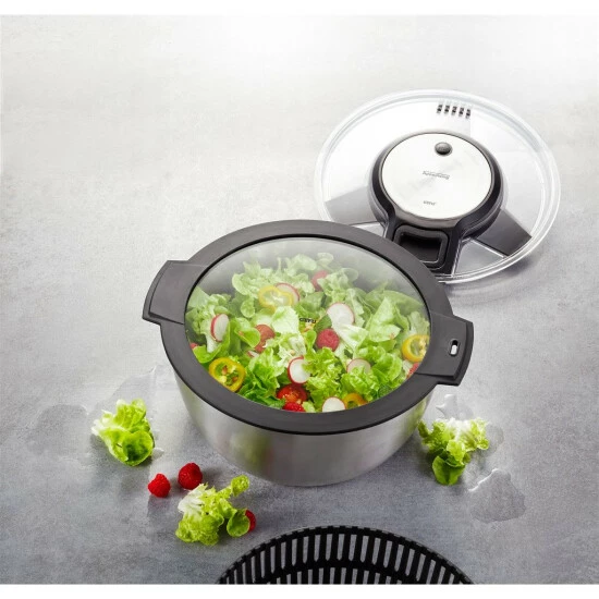 Set: Salatschleuder SPEEDWING® + Frischhaltedeckel Salat trocken schleudern und elegant servieren – kein Problem mit der Salatschleuder im schicken Edelstahl-Design.