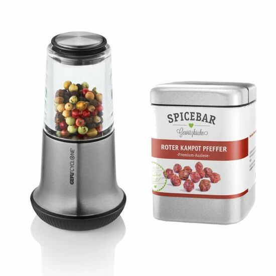 Gefu Spicebar Roter Kampot Pfeffer, ganze Körner, Gewürz, 80 g, Weißblechdose, Silber, 97510.03: