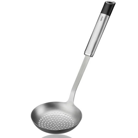 Mit dem extra tief gewölbten Schaumlöffel werden Klöße, Gnocchi und Pasta sicher aus der Garflüssigkeit geholt – und durch die gelochte Schöpffläche tropft überschüssige Flüssigkeit einfach ab.