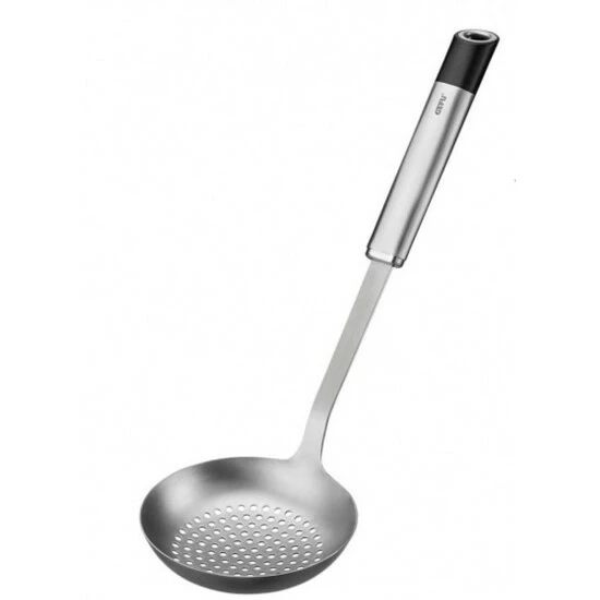 Schaumlöffel Primeline Das Abgießen von Gnocchi, Klößen und Pasta wird mit diesem tief gewölbten Schaumlöffel zum Kinderspiel. Die große gelochte Schöpffläche bietet reichlich Platz und bietet beim Umgießen und Abschöpfen reichlich Sicherheit, sodass nichts daneben geht. Ein ergonomisch geformter Griff macht das Handling zudem besonders einfach und angenehm. Der Schaumlöffel ist für die Reinigung in der Spülmaschine geeignet.
