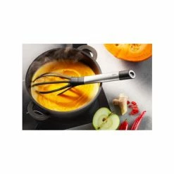 Der unentbehrliche Alleskönner zum mühelosen Schlagen von Sahnesaucen, vorsichtigen Unterheben von schaumigem Eiweiß, für luftig-gleichmäßigen Biskuitteig, perfekt gebundene Saucen und vieles mehr. Formstabil und ideal zur Verwendung in beschichteten Töpfen und Pfannen.
