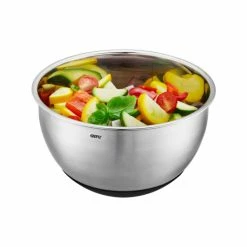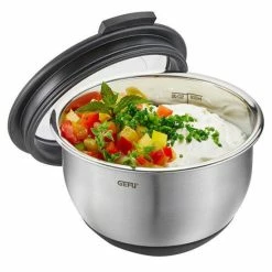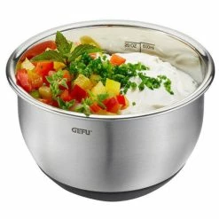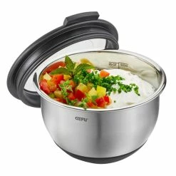 Eine runde Schüssel aus Edelstahl ist ein unverzichtbarer Artikel in jeder Küche. Eine Metallschüssel mit praktischem Deckel eignet sich sowohl zum Kochen und Zubereiten von Speisen, zum Mischen von Salaten, aber auch zum direkten Servieren und Aufbewahren von Lebensmitteln, zum Beispiel im Kühlschrank.