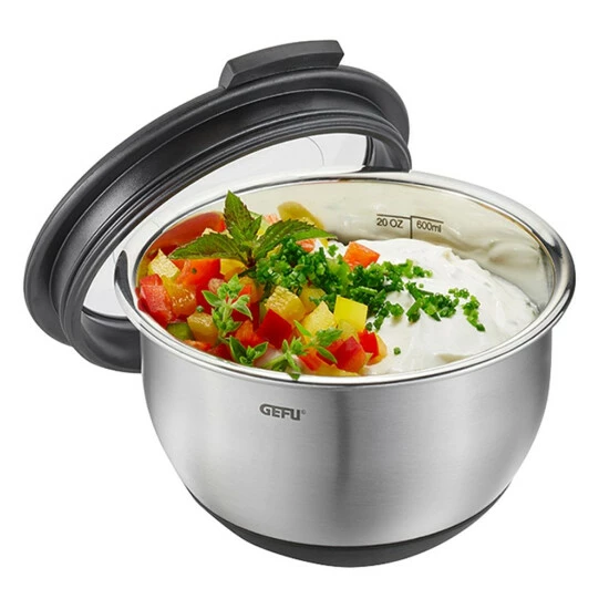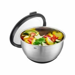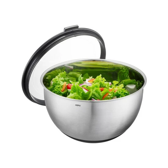 Die glatte Oberfläche der Schüssel ist leicht zu waschen und nimmt dafür die Gerüche des darin aufbewahrten Geschirrs nicht auf. Dank seines praktischen, dichten und luftdichten Deckels ist die Schüssel ideal, um Lebensmittel nicht nur im Kühlschrank, sondern auch im Freien, zum Beispiel auf der Terrasse, aufzubewahren und vor Insekten zu schützen. Die Edelstahlschüssel kann in der Spülmaschine gewaschen werden.