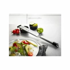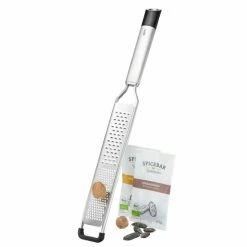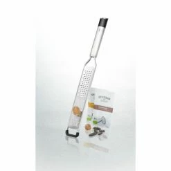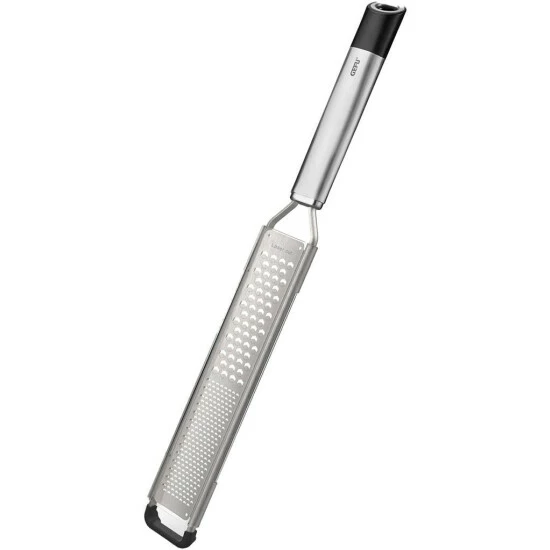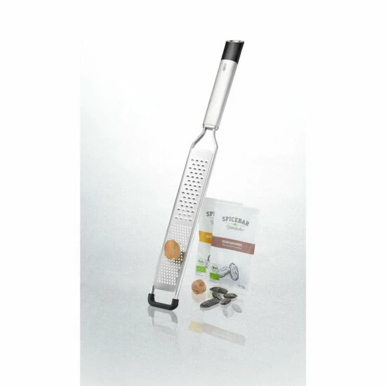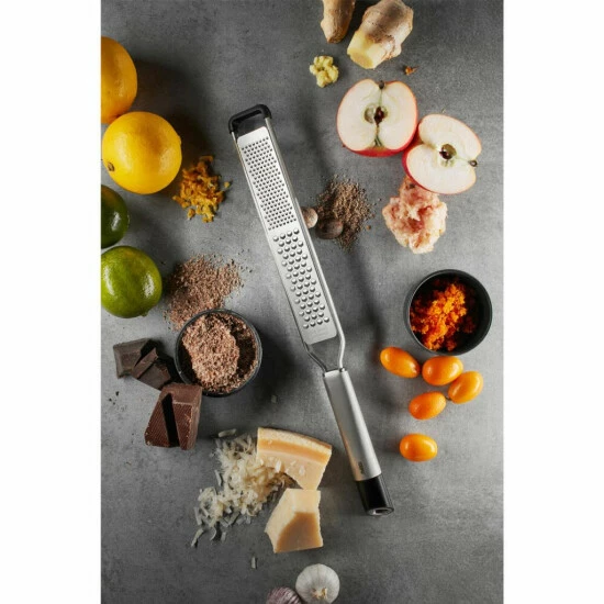 Feine Streusel von Zitrusfrüchten, Muskatnuss oder auch Tonkabohne, aber auch hauchzarte Flocken von Hartkäse oder Schokolade: Die lange Fein- und Grobreibe mit ihren zwei Reibeflächen sorgt für perfekte Ergebnisse.