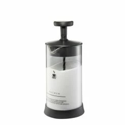 Ob Milchschaum für Kaffeespezialitäten oder ein frisch gemischter Chai-Latte: Der neuartige Wirbelmechanismus macht´s mit wenig Kraftaufwand möglich. Der Milchaufschäumer ist für die bequeme Reinigung zerlegbar, so lässt sich auch der rutschfeste Sockel abnehmen. Das hitzebeständige Glasgefäß ist zudem mikrowellen-geeignet, so dass sowohl kalte als auch warme Milch verarbeitet werden können. Der extra tiefe Rand des Deckels sorgt nicht nur dafür, dass nichts herausspritzen kann, durch das integrierte Sieb kann der Schaum von nicht aufgeschäumter Milch getrennt werden.