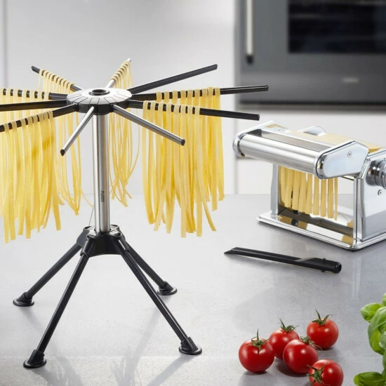 Und zum Trocknen der frischen Nudeln bietet der Pastatrockner DIVERSO auf seinen 10 Armen genügend Platz.