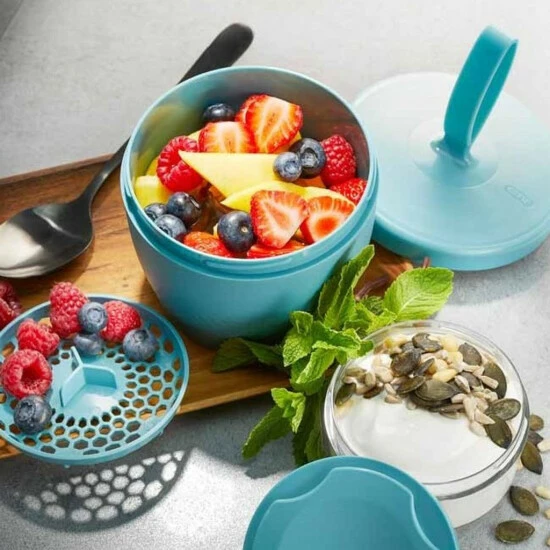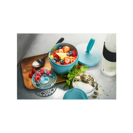Nie war Gutes tun schöner! Ihren Kreationen sind kaum Grenzen gesetzt. Egal ob frisches Obst mit Joghurt, Salat mit Dressing oder Rohkost mit Kräuterquark. Alle leckeren Snacks finden in dem cleveren Aufbau ihren Platz.