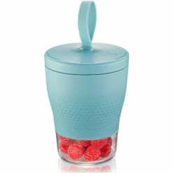 Ihren Kreationen sind kaum Grenzen gesetzt: Egal ob frisches Obst mit Joghurt, Salat mit Dressing oder Rohkost mit Kräuterquark- alle leckeren Snacks finden in dem cleveren Aufbau ihren Platz durch den integrierten extra Behälter als Topping-Fach. Die Snack Box gibt es in verschiedenen Farben. Maße. Ø 11,5 cm H 23 cm, Volumen Behälter unten 570 ml, Behälter oben 185 ml