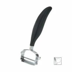Wer es scharf mag, ist bei dem Sparschäler Universale von Gefu an der richtigen Stelle. Sein äußerst schneidiges Klingenblatt befreit Karotten, Äpfel, Kartoffeln und mehr präzise von ihrer Schale. Die feine Klinge ist leicht beweglich und passt sich der Oberfläche von Obst und Gemüse somit optimal an, sodass beim Schälen nur minimal Frucht- oder Gemüsefleisch mit abgeschnitten wird. Die extrem scharfe Klinge ist aus japanischem Spezialklingenstahl gefertigt und überzeugt so mit perfekter Schnitthaltigkeit sowie enormer Härte (57 Rockwell). Der integrierte Schneidgutabstreifer verhindert zudem, dass die abgeschnittene Schale an der Klinge hängen bleibt. Sie müssen diese somit weniger reinigen und den Schneidvorgang zwischenzeitlich nicht unterbrechen. Die Edelstahlfassung ist darüber hinaus mit 2 Ausstechern versehen, mit denen sich unschöne Stellen oder kleine Strünke entfernen lassen. Er ist aus schwarzem Kunststoff gefertigt und überzeugt so mit einer besonders angenehmen und rutschsicheren Haptik. Der Sparschäler ist außerdem für Links- und Rechtshänder geeignet. Nach Gebrauch kann er bequem in der Spülmaschine gereinigt werden.
