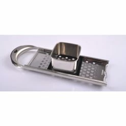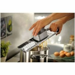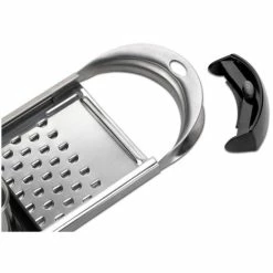 Der Spätzlehobel besteht komplett aus Edelstahl und sorgt mit dem Edelstahlschieber für ein leichtes Herstellen von kurzen Spätzle oder Knöpfle. Der Griff des Spätzlehobels ist mattiert und das Griffelement hat einen herausnehmbaren Kunststoffeinsatz. Die Topfauflage sorgt für einen rutschsicheren Stand. Der Küchenhelfer ist rostfrei und spülmaschinenfest.