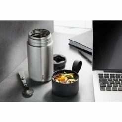 1 Thermo-Lunchpot mit integriertem Löffel aus Edelstahl